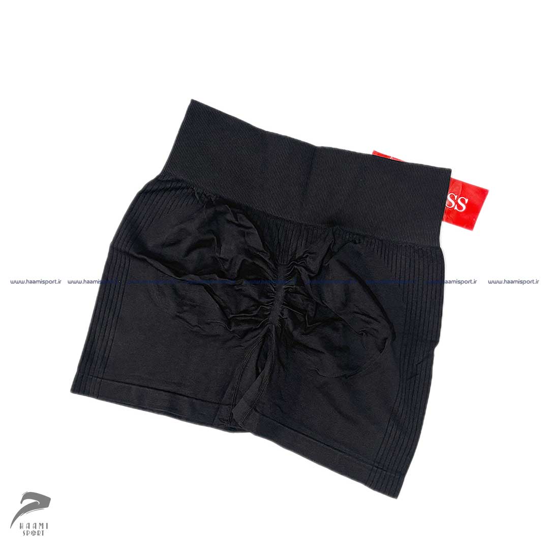 شلوارک سیملس پشت چین دار وارداتی برند فیتنس در رنگ پر طرفدار مشکی موجود میباشد.