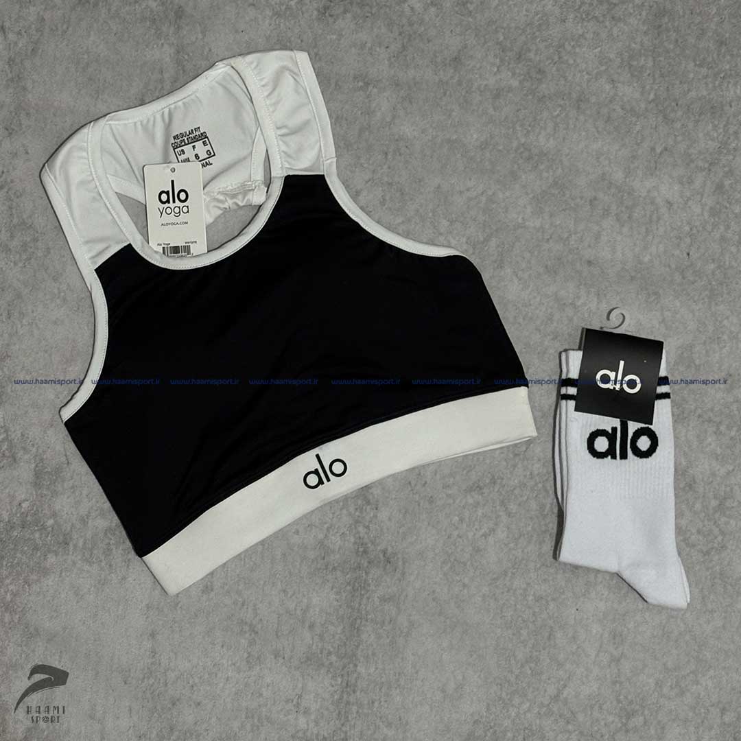 نیم تنه پشت بندی دو رنگ alo در رنگ مشکی سفید در حامی اسپرت موجود است.